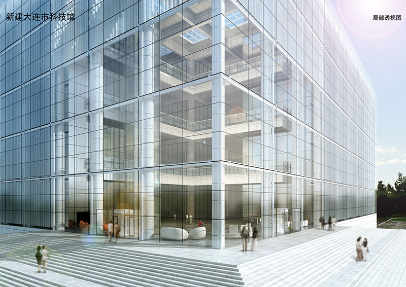 新建大連科技館項目位于大連市普灣新區鮑魚島村。計劃投資45237萬元,占地面積45000平方米,總建筑面積40000平方米,科技館地上五層,一層高5.6米,二~五層層高均為9米,二層~五層均設有局部夾層,夾層層高4.5米。總高度41.85米。外幕墻為玻璃幕墻、石材幕墻。